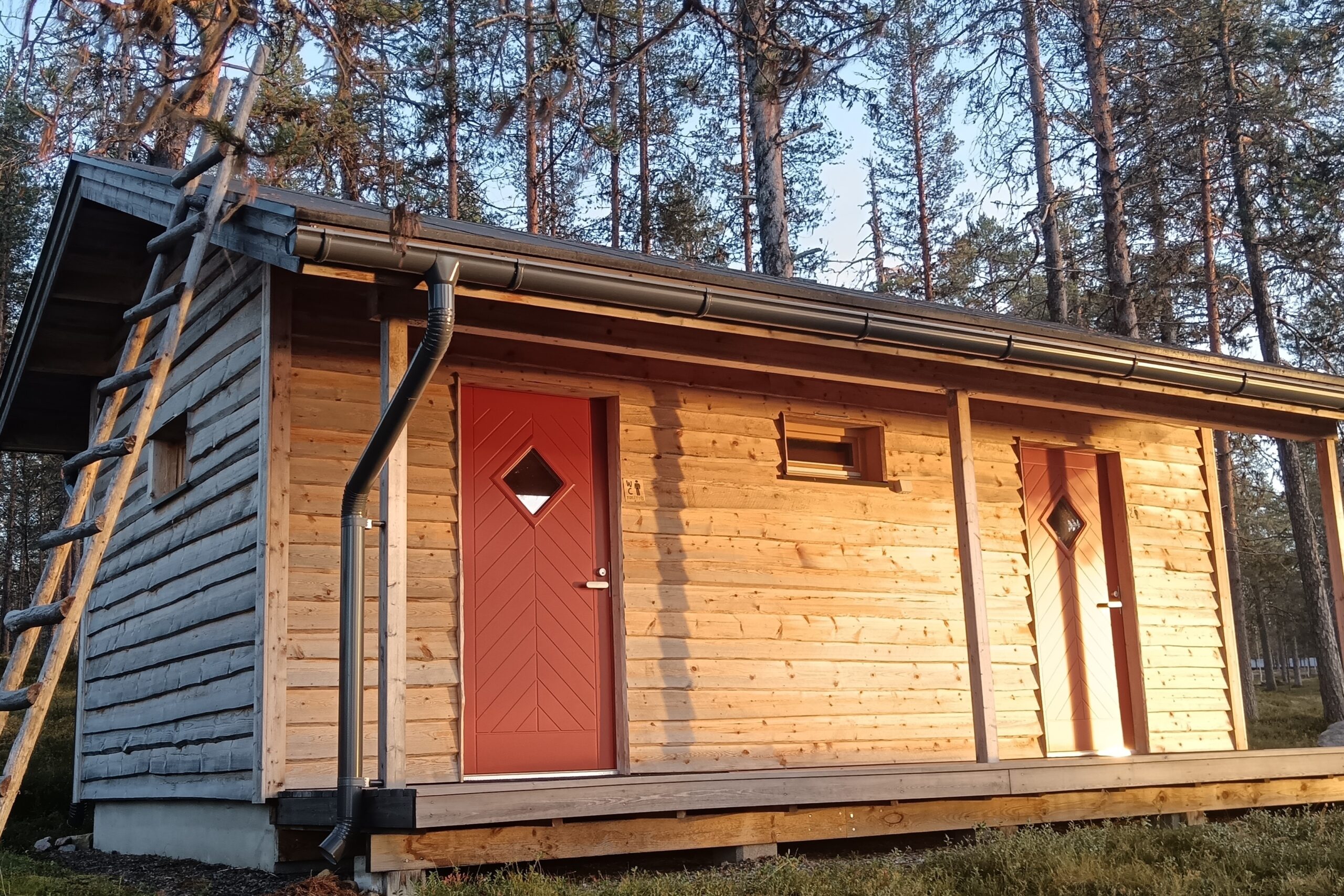 Uudisrakenteisessa erillisessä huoltorakennuksessa on modernit, siistit wc- ja suihkutilat. Se on vain muutaman kymmenen metrin etäisyydellä päärakennuksesta ja saunoista.